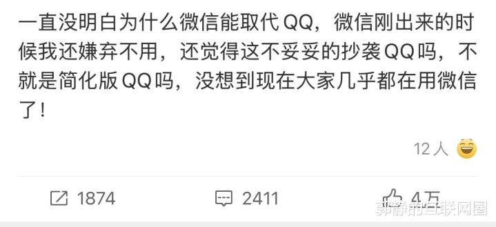不得不说的是,互联网行业发展太快了,以至于没有经历过微信发展的人就认为QQ可能更好,并诘问,为什么大家现在都跑去用微信去了?